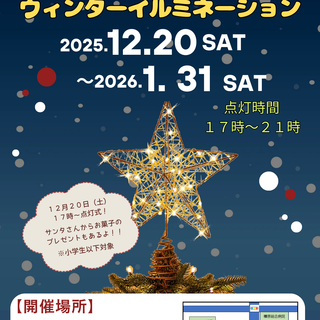 青年部ウィンターイルミネーション開催! 細江のコミュニティセンターにてウィンターイルミネーションが行われます。 是非お立ち寄りください [開催期間]2025年12月20日~2026年1月31日[点灯時間]17時~21時[開催場所]細江コミュニティセンター(牧之原市細江1106-1)[主催]牧之原市商工会青年部 12月20日(土)17時から点灯式を行います!サンタさんからのお菓子のプレゼントもあるよ!※小学生以下対象 前の記事 コメント コメントする コメントの投稿 コメントの返信 コメント (スタイル用のHTMLタグを使えます) 名前 電子メール URL サインイン情報を記憶